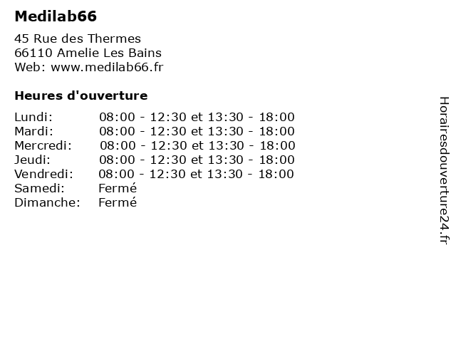 | Vendredi | 08:00-12:30 et 13:30-18:00 |