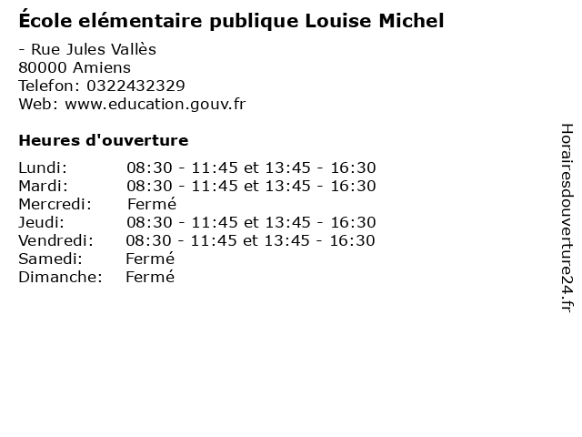 | Mardi | 08:30-11:45 et 13:45-16:30 |