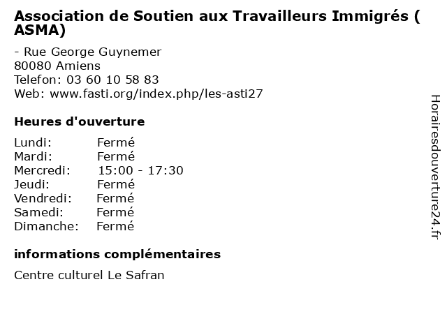 | Samedi | Fermé |