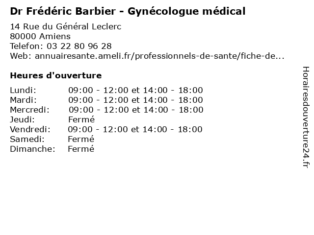 | Lundi | 09:00-12:00 et 14:00-18:00 |