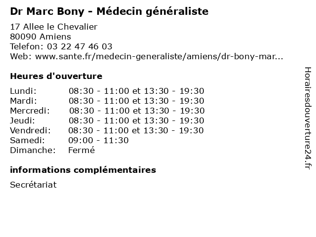 | Mercredi | 08:30-11:00 et 13:30-19:30 |
