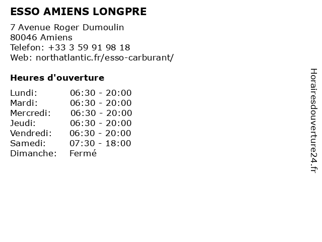 | Lundi | 06:30-20:00 |