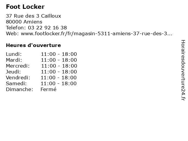 1 Foot Locker (Distance: 0,01 km) 37 Rue des 3 cailloux, 80000 Amiens foot, locker, magasin de chaussures, magasin de vêtements de sport, magasin d’accessoires de mode 2 Go Sport (Distance: 3,30 km) - Rue Botticelli, 80000 Amiens articles, chaussures, fitness, foot, football, go, musculation, natation, randonnée, running, ski, sport, sportif, sports, tennis, vélos, vêtements, équipement 3 Teams5 (Distance: 3,77 km) 25 rue le Tintoret, 80080 Amiens amiens, foot, indoor, teams, teams 5, teams5 4 Intersport (Distance: 52,30 km) - Rue Jacques Godet, 60000 Beauvais articles, chaussures, fitness, foot, football, intersport, musculation, natation, randonnée, running, ski, sport, sportif, sports, tennis, vélos, vêtements, équipement 5 Foot Locker (Distance: 53,28 km) 4 Boulevard, 60000 Beauvais foot, locker, magasin de chaussures, magasin de vêtements de sport, magasin d’accessoires de mode 6 Foot Locker (Distance: 53,34 km) 2284 Boulevard Saint André, 60000 Beauvais baskets, chaussures, foot, france, locker, magasins, sport |