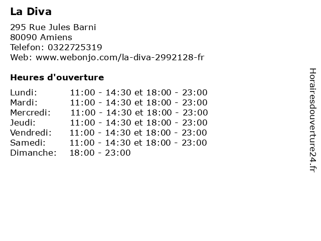 | Samedi | 11:00-14:30 et 18:00-23:00 |