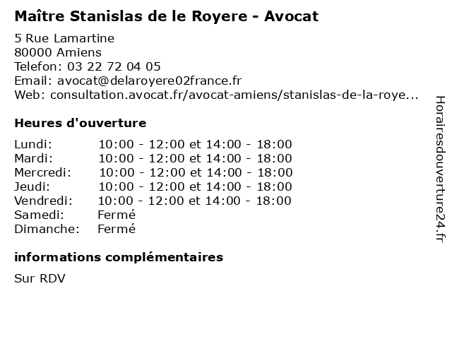 | Lundi | 10:00-12:00 et 14:00-18:00 |