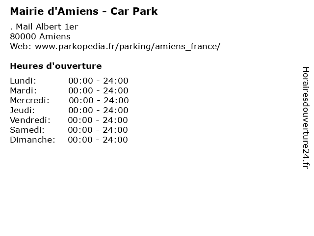 1 Mairie d'Amiens - Car Park (Distance: 0,18 km) . Place Longueville, 80000 Amiens automobile, car, d'amiens, mairie, park, parking, services 2 Mairie d'Amiens - Car Park (Distance: 0,32 km) . Esplanade Edouard Branly, 80000 Amiens automobile, car, d'amiens, mairie, park, parking, services 3 Mairie d'Amiens - Car Park (Distance: 0,55 km) . Rue Robert Pierre, 80000 Amiens automobile, car, d'amiens, mairie, park, parking, services 4 Mairie d'Amiens - Car Park (Distance: 0,81 km) . Place Saint-Michel, 80000 Amiens automobile, car, d'amiens, mairie, park, parking, services 5 Mairie d'Amiens - Car Park (Distance: 0,86 km) . Place au Feurre, 80000 Amiens automobile, car, d'amiens, mairie, park, parking, services 6 Mairie d'Amiens - Car Park (Distance: 0,97 km) 22 Boulevard Garibaldi, 80000 Amiens automobile, car, d'amiens, mairie, park, parking, services |