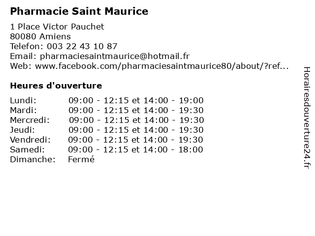 | Samedi | 09:00-12:15 et 14:00-18:00 |