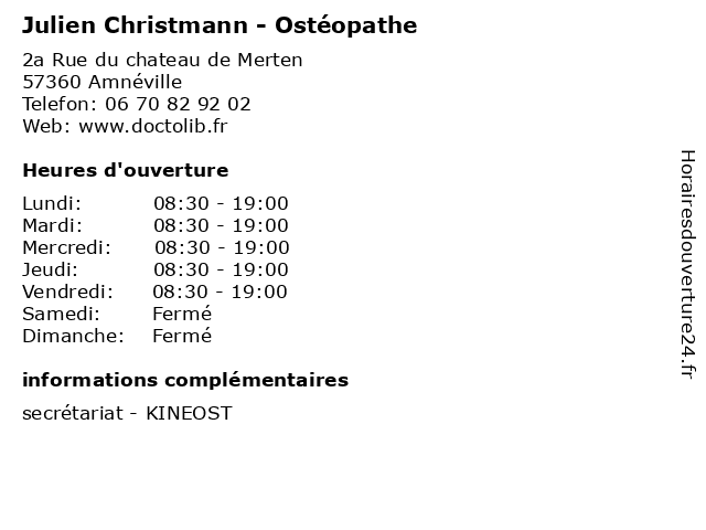 | Lundi | 08:30-19:00 |