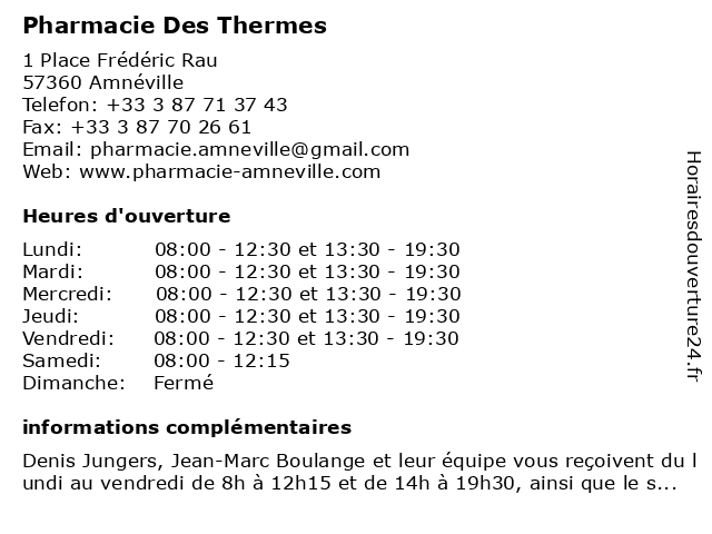 | Lundi | 08:00-12:30 et 13:30-19:30 |