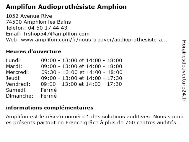 | Lundi | 09:00-13:00 et 14:00-18:00 |