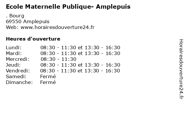 | Mardi | 08:30-11:30 et 13:30-16:30 |
