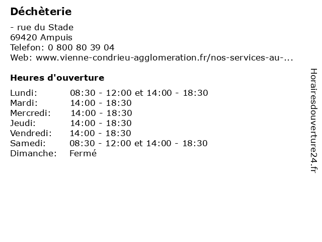 Samedi | 08:30-12:00 et 14:00-18:30 |