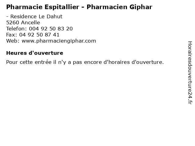 Appeler Pharmacie Espitallier - Pharmacien Giphar | |