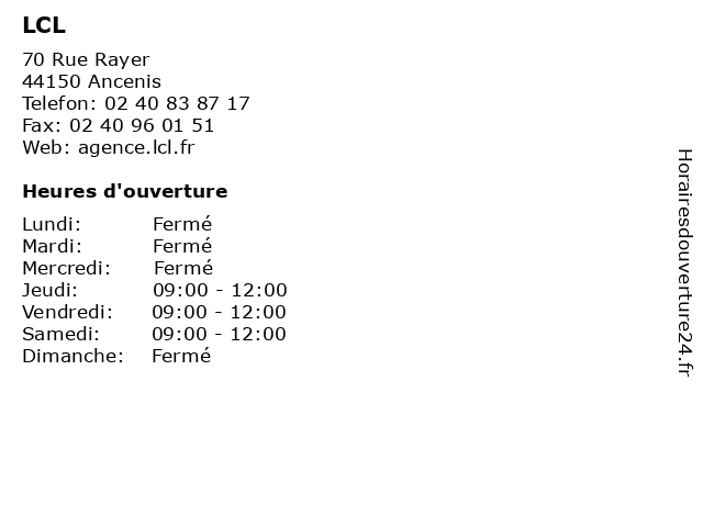 | Lundi | Fermé |