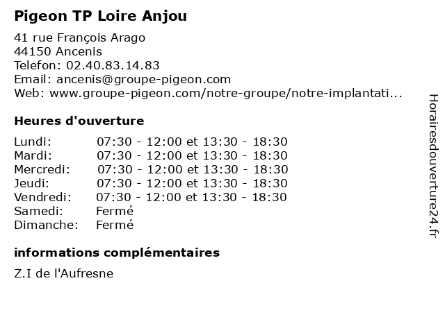 | Lundi | 07:30-12:00 et 13:30-18:30 |