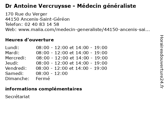 | Lundi | 08:00-12:00 et 14:00-19:00 |