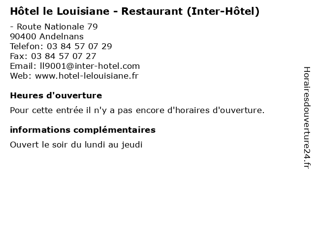 | Appeler Hôtel le Louisiane - Restaurant (Inter-Hôtel) | |