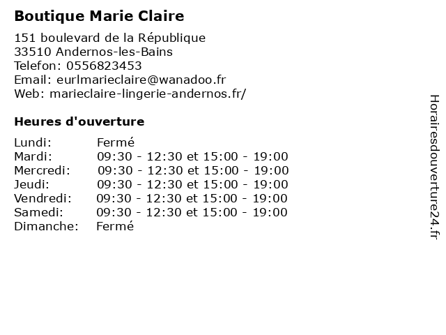 | Mardi | 09:30-12:30 et 15:00-19:00 |