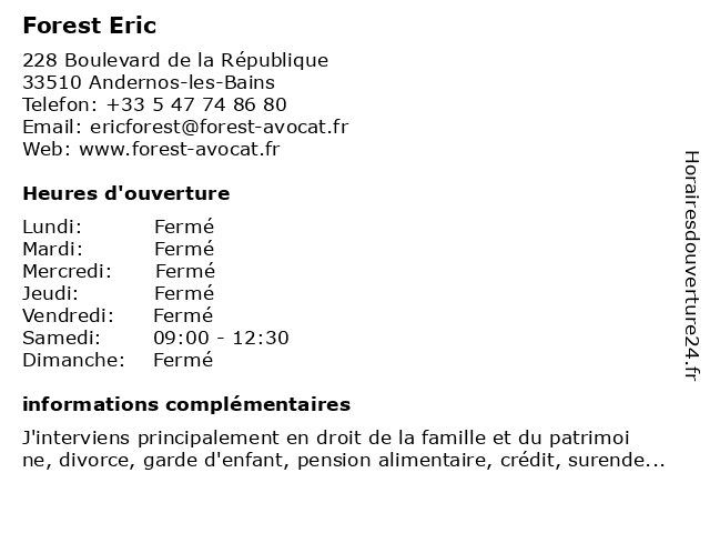 1 Forest Eric (Distance: 11,73 km) 120 Avenue du Maréchal de Lattre de Tassigny, 33470 Gujan-Mestras eric, forest 2 Eric Arnaud Immobilier (Distance: 0,33 km) 26 Avenue de Bordeaux, 33510 Andernos-les-Bains achats, agence, arnaud, eric, gestion, immobilier, location, transaction, vente 3 Crouste Jean-Pierre Eric (Distance: 1,93 km) 21 Rue Des Huitriers, 33510 Andernos Les Bains crouste, eric, jean, pierre, restaurants 4 Maître Eric Forest - Avocat (Distance: 2,01 km) 228 boulevard de la Republique, 33510 Andernos les Bains avocat, avocats, civils, droits, eric, forest, juridiques, maître 5 Bordessoules Gines Eric Jean Jacques (Distance: 11,27 km) 186 b Route Du Cap Ferret, 33950 Lege Cap Ferret bordessoules, eric, gines, jacques, jean, restaurants 6 Maître Eric Laborie - Avocat (Distance: 12,88 km) 6 rue François Legallais, 33260 La Teste de Buch avocat, avocate, avocats, civils, droits, eric, juridiques, laborie, maître |