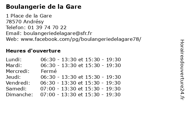 Termes de recherche pour Boulangerie de la Gare:la, de, alimentation, gare, commerce, boulangerie, pain, gateaux, baguette, andrésy |