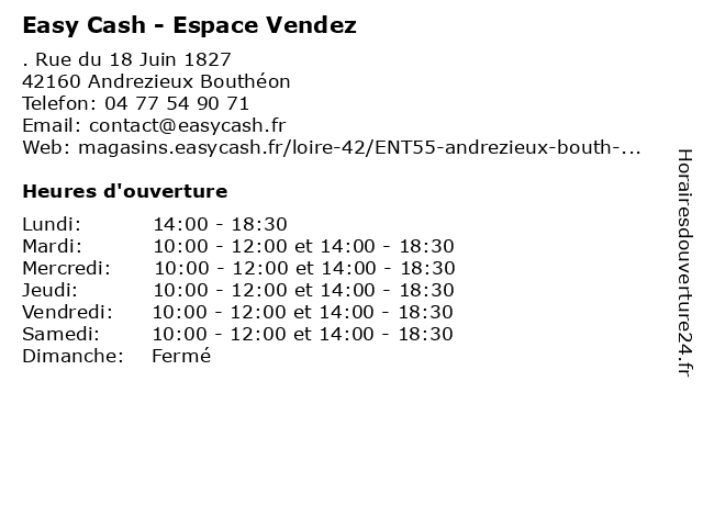 | Jeudi | 10:00-12:00 et 14:00-18:30 |