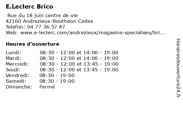 1 E.Leclerc Sports (Distance: 0,14 km) Zi Nord Centre de Vie, 42162 Andrezieux-Boutheon Cedex e.leclerc, magasin d'articles de ski, magasin de maillots de bain, magasin de vélos, sports 2 Leclerc - Borne de recharge électrique (Distance: 0,42 km) 6 Avenue Hélène Boucher, 42160 Andrézieux-Bouthéon borne, de, leclerc, recharge, électrique 3 E.Leclerc Parapharmacie (Distance: 0,92 km) . Chemin Voisin, 42163 Andrezieux-Boutheon e.leclerc, parapharmacie, service, services, services à la personne 4 E.Leclerc Sport (Distance: 0,92 km) . Chemin Voisin, 42163 Andrezieux-Boutheon e.leclerc, service, services, services à la personne, sport 5 Brico Cash Saint Cyprien (Distance: 3,92 km) 7 Rue des Prairies, 42160 Saint-Cyprien brico, cash, cyprien, saint 6 Eureka Ma Maison - Brico-Will (Distance: 13,08 km) 81 Place Paul Doumer, 42210 Montrond-les-Bains brico, droguerie, eureka, ma, magasins, maison, quincaillerie, ustensiles, will |