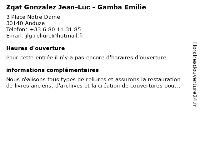 | Appeler Zqat Gonzalez Jean-Luc - Gamba Emilie | |