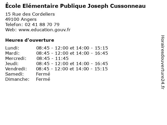 | Mardi | 08:45-12:00 et 14:00-16:45 |