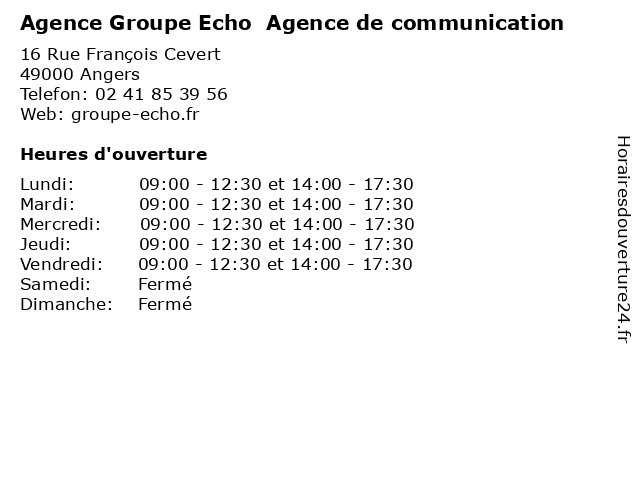 | Lundi | 09:00-12:30 et 14:00-17:30 |