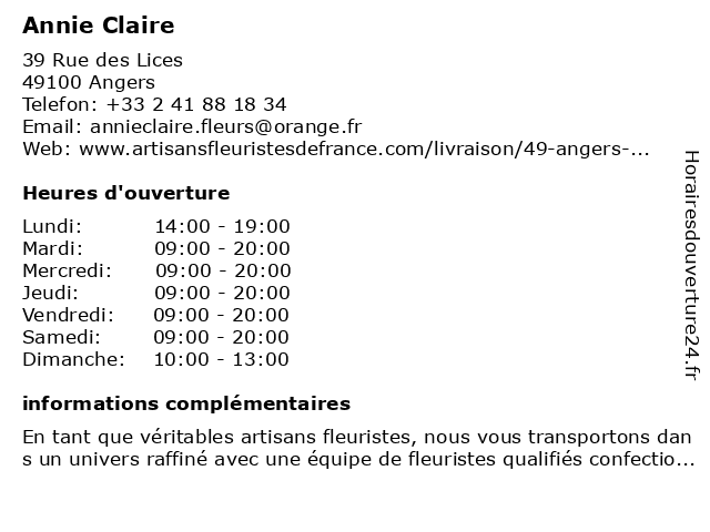 Horaires d'ouverture |