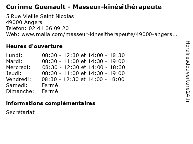 | Mardi | 08:30-11:00 et 14:30-19:00 |