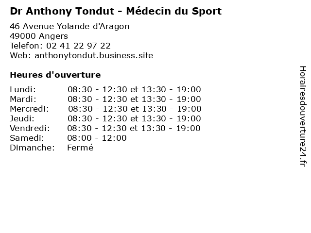 | Mardi | 08:30-12:30 et 13:30-19:00 |