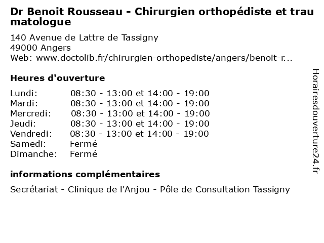 1 Dr François Badatcheff - Chirurgien orthopédiste et traumatologue (Distance: 0,00 km) 140 Avenue de Lattre de Tassigny, 49000 Angers badatcheff, chirurgien, dr, et, françois, orthopédiste, traumatologue 2 Dr Frederic Esling - Chirurgien orthopédiste (Distance: 0,00 km) 140 Avenue de Lattre de Tassigny, 49000 Angers chirurgie, chirurgien, dr, esling, frederic, general, orthopédiste, soins 3 Dr Franck Hadjadje - Chirurgien orthopédiste (Distance: 0,00 km) 140 Avenue de Lattre de Tassigny, 49000 Angers chirurgie, chirurgien, dr, franck, general, hadjadje, orthopédiste, soins 4 Dr Marc Henri Rosas - Chirurgien orthopédiste (Distance: 0,00 km) 140 Avenue de Lattre de Tassigny, 49000 Angers chirurgie, chirurgien, dr, general, henri, marc, orthopédiste, rosas, soins 5 Eric Le Borgne - Orthopédiste-orthésiste (Distance: 0,02 km) 140 Avenue de Lattre de Tassigny, 49000 Angers borgne, eric, le, medical, orthopédiste, orthésiste, podologiste 6 Dr Olivier Chomarat - Chirurgien orthopédiste (Distance: 2,16 km) 18 rue de Bellinière, 49800 Trélazé chirurgien, chomarat, consultation, docteur, dr, med, médecin, médecine, olivier, orthopédiste, traitement |