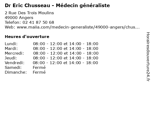 | Mardi | 08:00-12:00 et 14:00-18:00 |