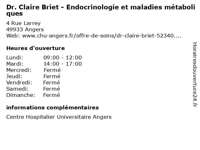 Termes de recherche pour Dr. Claire Briet - Endocrinologie et maladies métaboliques:et, santé, claire, docteur, dr., médecins, maladies, métaboliques, endocrinologie, briet |