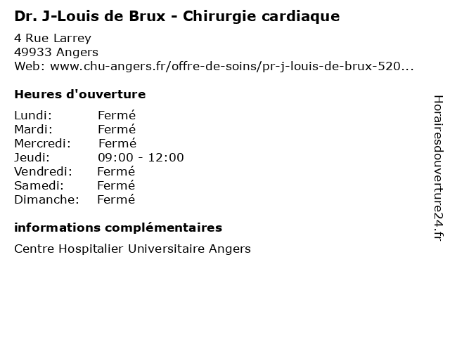 Termes de recherche pour Dr. J-Louis de Brux - Chirurgie cardiaque:de, louis, santé, chirurgie, docteur, brux, dr., médecins, cardiaque, pr. |