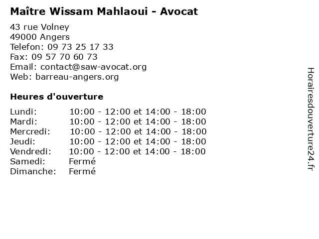 | Lundi | 10:00-12:00 et 14:00-18:00 |