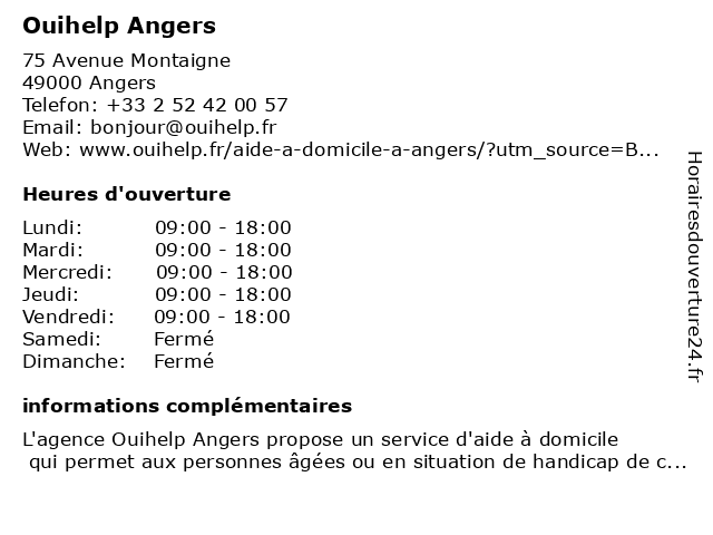 1 OUIHELP ANGERS- Aide à domicile (Distance: 1,27 km) 11 Rue du Chêne Vert, 49124 Saint-Barthélemy-d'Anjou aide, angers, domicile, ouihelp |