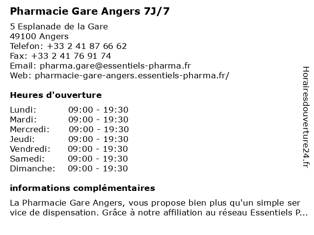 Termes de recherche pour Pharmacie Gare Angers 7J/7:angers, gare, pharmacie, 7j/7 |