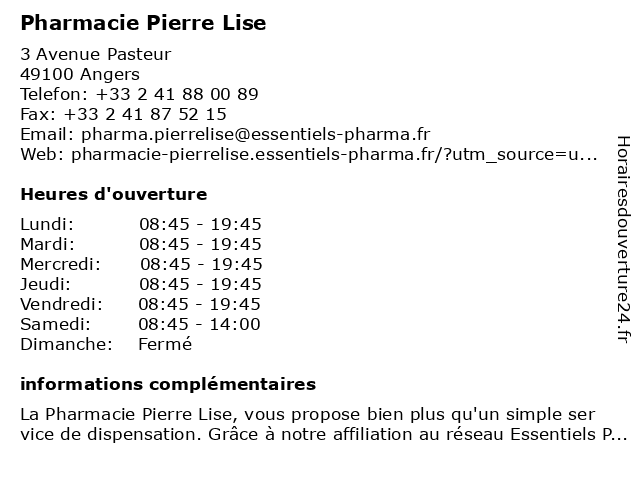 | Lundi | 08:45-19:45 |