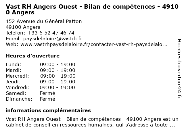 Termes de recherche pour Vast RH Angers Ouest - Bilan de compétences - 49100 Angers:angers, de, ouest, bilan, vast, rh, compétences, 49100 |