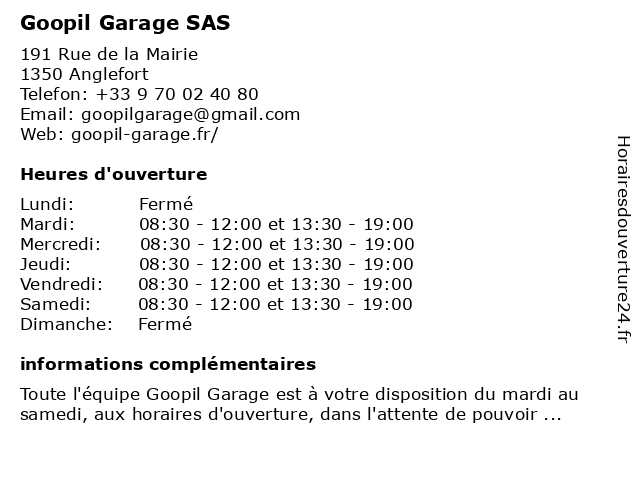 Samedi | 08:30-12:00 et 13:30-19:00 |