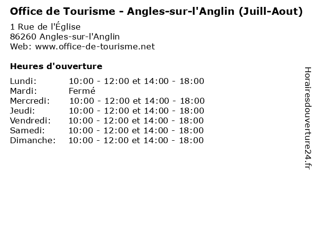 Termes de recherche pour Office de Tourisme - Angles-sur-l'Anglin (Juill-Aout):sur, de, services, office, tourisme, août, bureaux, l'anglin, angles, juill |