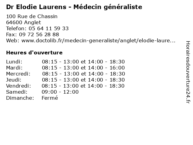 | Lundi | 08:15-13:00 et 14:00-18:30 |