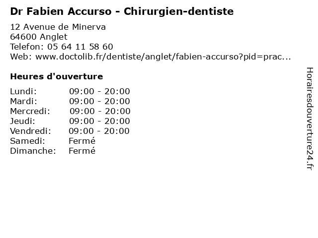 1 Dr Fabien Accurso - Chirurgien-dentiste (Distance: 2,23 km) 3 Rue de Saubadine, 64600 Anglet accurso, chirurgien, dentaire, dentiste, dr, fabien, implantologie, parodontologie 2 Fabien Hiquet - Masseur-kinésithérapeute (Distance: 2,70 km) 35 Avenue Paul Pras, 64100 Bayonne fabien, hiquet, kiné, kinésithérapeute, masseur, rééducation, soin 3 Maître Fabien Macagno - Avocat (Distance: 2,88 km) 15 allées Marines, 64100 Bayonne avocat, avocate, avocats, civils, droits, fabien, juridiques, macagno, maître 5 Entreprise Perret Fabien (Distance: 19,65 km) 21 Rue Xoko Berr, 64240 Hasparren communication, domotique, entreprise, fabien, hasparren, perret, électricité générale 6 |