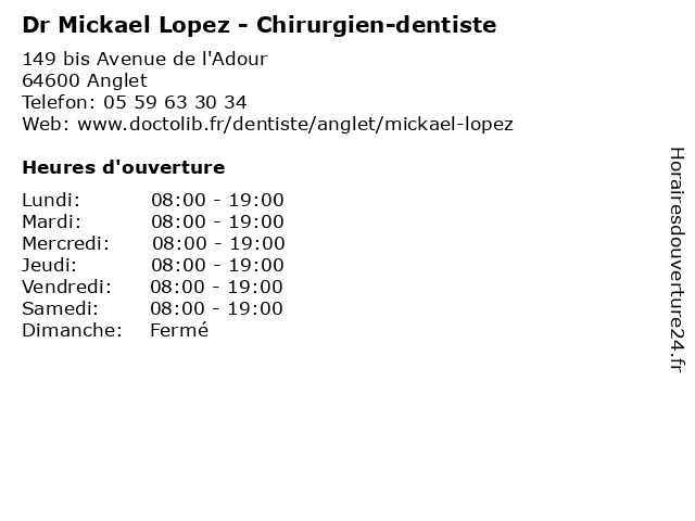 | Lundi | 08:00-19:00 |