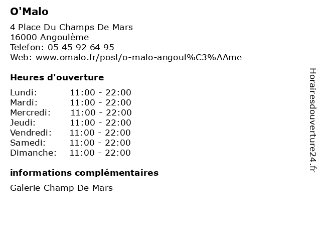 Termes de recherche pour O'Malo:de, commercial, centre, champ, mars, angouleme, o'malo |