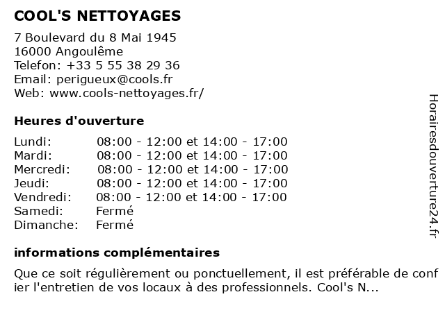 Termes de recherche pour COOL'S NETTOYAGES:nettoyages, cool's |