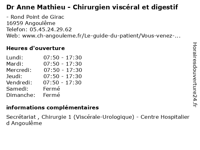 | Mercredi | 07:50-17:30 |