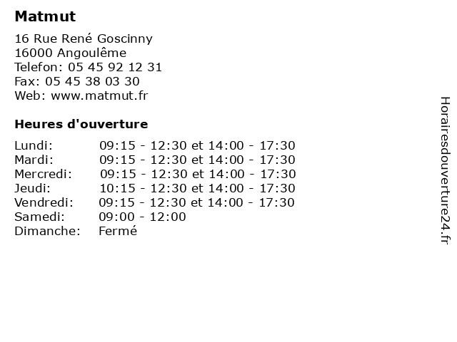 | Mardi | 09:15-12:30 et 14:00-17:30 |
